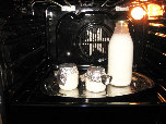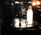 Poner los envases a incubar aproximadamente a 42°C , se pueden incubar entre 38°C y 45°C. Mirando que a 45°C se hace más rápido que a 38°C, pero entre 40°C y 42°C se hace mejor. Si usas un horno eléctrico ventilado, graduá el termostato a 42°C y un tiempo de 2 horas.